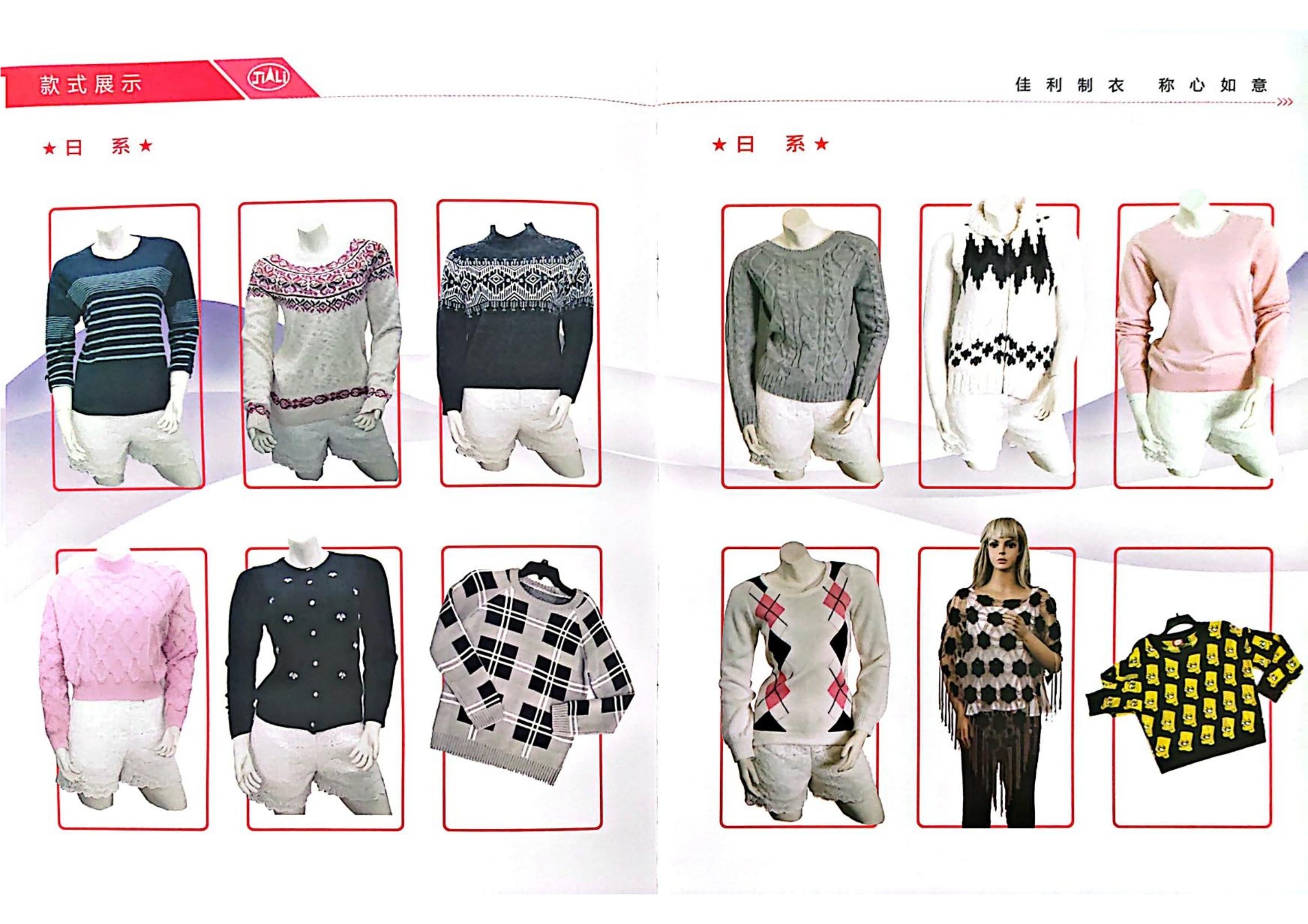 山東省乳山市佳利制股份有限公司于2001年2月成立,位于乳山市城區工業園營口路。現有從業人員260人,其中男性100人,女性160人。固定資產5000萬元,占地22000㎡,建筑面積13800㎡。主要生產各種針型的毛衫及手鉤、刺繡等工藝服裝,針織、梭織面料服裝,主要銷往日本、美國、意大利、英國等幾十個國家和地區。